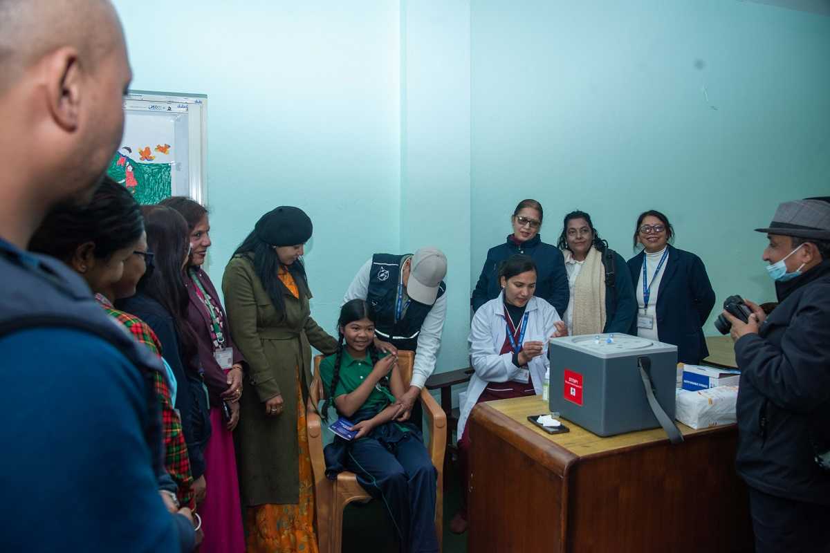 पदमकन्या विद्याश्रम माध्यमिक विद्यालय, डिल्लीबजार कार्यक्रम सुरु गर्दै महानगरपालिकाका कार्यवाहक प्रमुख सुनिता डंगोलले महिलाहरुमा हुन सक्ने पाठेघरको मुखको क्यान्सरबाट बचावट गर्न भाइरस विरुद्धको खोप प्रभावकारी रहेको बताउनुभयो । ‘लक्षित समूहलाई खोप सेवा प्रदान गर्न महानगरपालिकाले खोप केन्द्र सञ्चालन सम्बन्धी सुक्ष्म योजना बनाएर काम गरिरहेको छ । आन्तरिक तथा वाह्य समन्वय तथा सहकार्य, जनशक्ति र स्रोत साधनको उचित परिचालन गरिएको छ ।’ उहाँले भन्नुभयो, ‘छात्राहरुलाई दिइने यो खोपलाई प्रभावकारी बनाउन विद्यालय परिवार र अभिभावकहरुलाई विशेष अनुरोध गर्दछु ।’