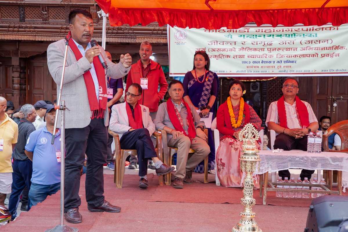 काठमाडौँ । काठमाडौँको प्राचीन सहरी बस्ती असं (असन)को मौलिकता फिर्ता गराउन आज देखि पुनरुत्थान अभियान सुरु भएको छ । असं डवलीमा आयोजित विशेष समारोहमा काठमाडौँ महानगरपालिकाका कार्यवाहक प्रमुख सुनिता डंगोलले अभियान शुभारम्भ गर्नुभएको हो । उद्घाटन अघि कःमिलाछी (दरबार हाइस्कूल छेउ) देखि असनसम्म, असनदेखि भोटाहिटी, महावौद्ध स्तुप हुँदै क्यलःत्वाः (केलटोल) सम्म सांस्कृतिक बाजागाजासहित पदयात्रा गरिएको थियो । यस क्षेत्रमा १३ वटा गुठि तथा परम्परागत बादन तथा गायन समूह छन् । पदयात्रामा परम्परागत समूहका सदस्यहरुले वादन तथा सांस्कृतिक झाँकी प्रदर्शन गरेका थिए । क्यलःत्वाः पुगेपछि अभियानको निरन्तरताका लागि कार्यक्रम वडा २५ का अध्यक्ष राजेश डंगोललाई हस्तान्तरण गरिएको थियो ।