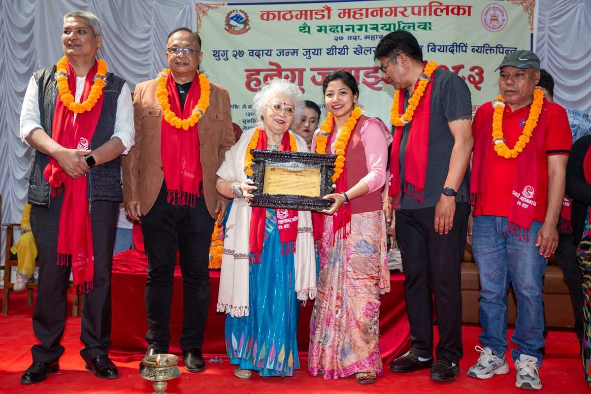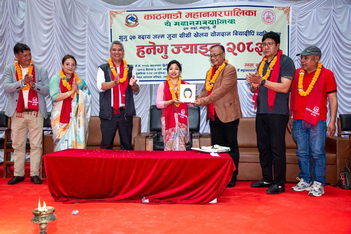 काठमाडौँ । वडामा जन्मिएर विभिन्न क्षेत्रमा योगदान दिने ३२ जना विशिष्ठ व्यक्तिहरुलाई वडा २७ ले सम्मान गरेको छ । नेपाल व्यायाम मन्दिरमा आयोजना गरिएको कार्यक्रममा स्वास्थ्य, शिक्षा, सामाजिक विकास, गायन, वादन, खेलकुद क्षेत्रमा योगदान गर्ने १९ जना व्यक्तित्व हुनुहुन्थ्यो । यस्तै ५ जना सामाजिक व्यक्तित्व र ८ जना पूर्व वडाध्यक्षहरुलाई मरणोपरान्त सम्मान प्रदान गरिएको हो । उहाँहरुलाई महानगरपालिकाका कार्यवाहक प्रमुख सुनिता डंगोल, प्रवक्ता नविन मानन्धर, वडाध्यक्ष योगेशकुमार खड्गीले माला, दोसल्ला तथा प्रमाण पत्रबाट सम्मान गर्नुभयो ।