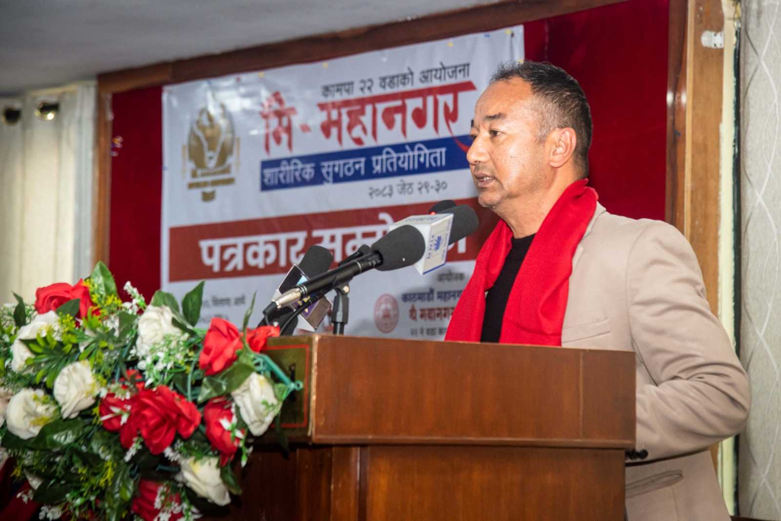 काठमाडौँ । आउँदो वर्ष (२०८३) जेठ २९ र ३० गते दोस्रो महानगरस्तरीय बडीबिल्डिङ् च्याम्पियनसिप आयोजना हुने भएको छ । काठमाडौँ महानगरपालिकाको वडा नम्बर २२ ले आयोजना गर्ने च्याम्पियनसिपका बारेमा जानकारी दिन आयोजित पत्रकार भेटघाट कार्यक्रममा वडाध्यक्ष एवं महानगरपालिकाको स्वास्थ्य तथा शिक्षा समितिका संयोजक चिनीकाजी महर्जनले ‘व्यायाम गरौँ, स्वस्थ रहौँ’, ‘स्वास्थ्यका लागि व्यायाम’, भन्ने नारासहित च्याम्पियनसिप आयोजना गर्न लागिएको जानकारी दिनुभयो ।
