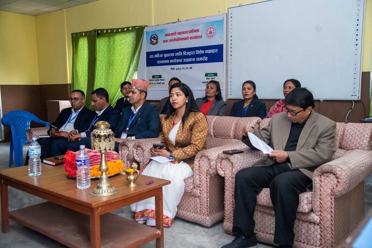 काठमाडौँ । काठमाडौँ महानगरपालिकाको शिक्षा विभागले आज देखि माध्यमिक शिक्षा परीक्षा (एसईई) को नतिजा सुधारका लागि ६ वटा विद्यालयमा विशेष कक्षा सुरु गरेको छ । गत वर्षहरुका लिइएको एसईई परीक्षामा ५० प्रतिशतभन्दा कम विद्यार्थी उत्तीर्ण भएका ११ वटा विद्यालयमा विशेष कक्षा सञ्चालन गर्ने विभागको योजना छ । यीमध्ये पहिलो चरणमा धेरै विद्यार्थी भएका गीतामाता माध्यमिक विद्यालय, कोटेश्वर सरस्वती माध्यमिक विद्यालय, जुद्धोदय माध्यमिक विद्यालय, पद्मकन्या माध्यमिक विद्यालय, परोपकार माध्यमिक विद्यालय र गुहेश्वरी बाल शिक्षा माध्यमिक विद्यालयमा कक्षा सुरु गरिएको हो । यी विद्यालयमा विशेष कक्षाको आवश्यकता भएका ५२३ जना विद्यार्थीलाई कक्षामा सहभागी गराइनेछ । विषय विज्ञ, स्रोत शिक्षक, सेवा निवृत्त शिक्षकहरुले यी कक्षाहरु लिनुहुनेछ ।