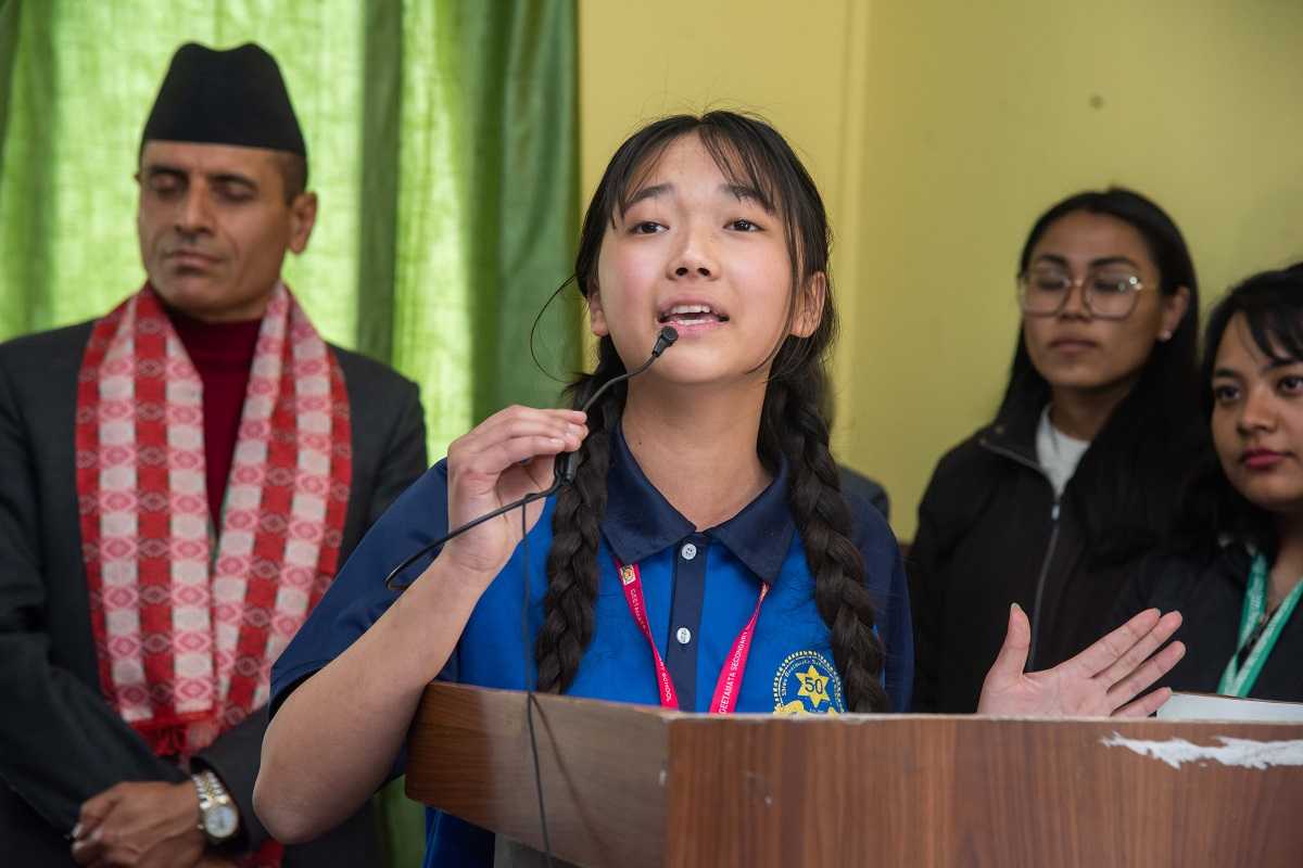 गीतामाता मा. वि. को कक्षा १० मा अध्ययनरत छात्रा रोजिना तामाङ्ले कार्यक्रममा उत्कृष्ट नतिजा दिनका लागि विद्यार्थीहरुका तर्फबाट प्रतिवद्धता जनाउनुभयो । ‘माध्यमिक शिक्षा स्थानीय सरकारले हेर्न थालेपछि, विद्यार्थीहरुका लागि विभिन्न कार्यक्रम ल्याउने महानगरपालिका र दूरदृष्टि राख्ने नगर प्रमुख तथा जनप्रतिनिधि भएपछि हामी सिकाइप्रति उत्साहित छौँ । उत्कृष्ट नतिजा दिन्छौँ ।’ तामाङ्ले प्रतिवद्धता मन्तव्य राख्नुभयो ।