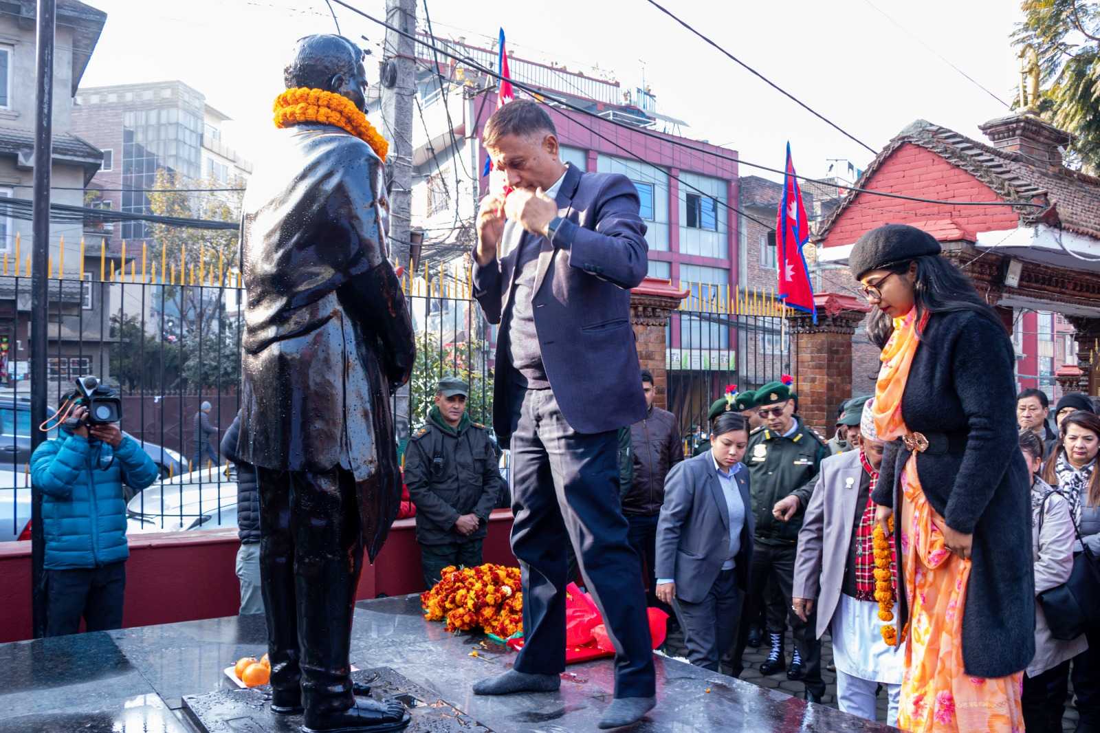 सहिदको सालिकमा पुष्पगुच्छा अर्पण गर्दै सहिद सप्ताह मूल समारोह समितिका संयोजक एवं काठमाडौँ महानगरपालिका कार्यवाहक प्रमुख सुनिता डंगोलले, विगतको शासनमा नागरिकले भोग्नु परेका क्रुरता, असमानता तथा कुष्ठित अवस्था नवपुस्ताले अनुभूति गर्नु नपरोस् भन्नका लागि सहिदको संघर्ष र बलिदानी म्सरण गर्न कार्यक्रम आयोजना गरिएको बताउनुभयो । माथेमाले प्रजातन्त्र प्राप्तिका लागि खेल्नु भएको भूमिका र सामाजिक रुपान्तरणमा पुर्याउनु भएको योगदानको चर्चा गर्दै डंगोलले भन्नुभयो, ‘माथेमामा राजनीतिक चेतना थियो । उहाँ शारीरिक सुगठन (व्यायाम) का प्रवर्धक हुनुहुन्थ्यो । राजालाई व्यायाम सिकाउने शिक्षक भएर पनि निरङ्कुस शासनविरुद्ध संघर्ष गर्ने उहाँको आँट युवाहरुले सिक्नु पर्ने पाठ हो । स्मरण गर्नु पर्ने इतिहास हो । शासकसँगको सम्बन्धका कारण व्यक्तिगत रुपमा उहाँलाई सुख सुविधा सबै प्राप्त हुन सक्थ्यो । त्यो सुख सयल त्यागेर नागरिक स्वतन्त्रताका लागि ज्यान दिन तयार हुनुभयो । उहाँको बलिदानीका कारण आज हामी मनमा लागेका कुरा यहाँ उभिएर बोलिरहेका छौँ ।’